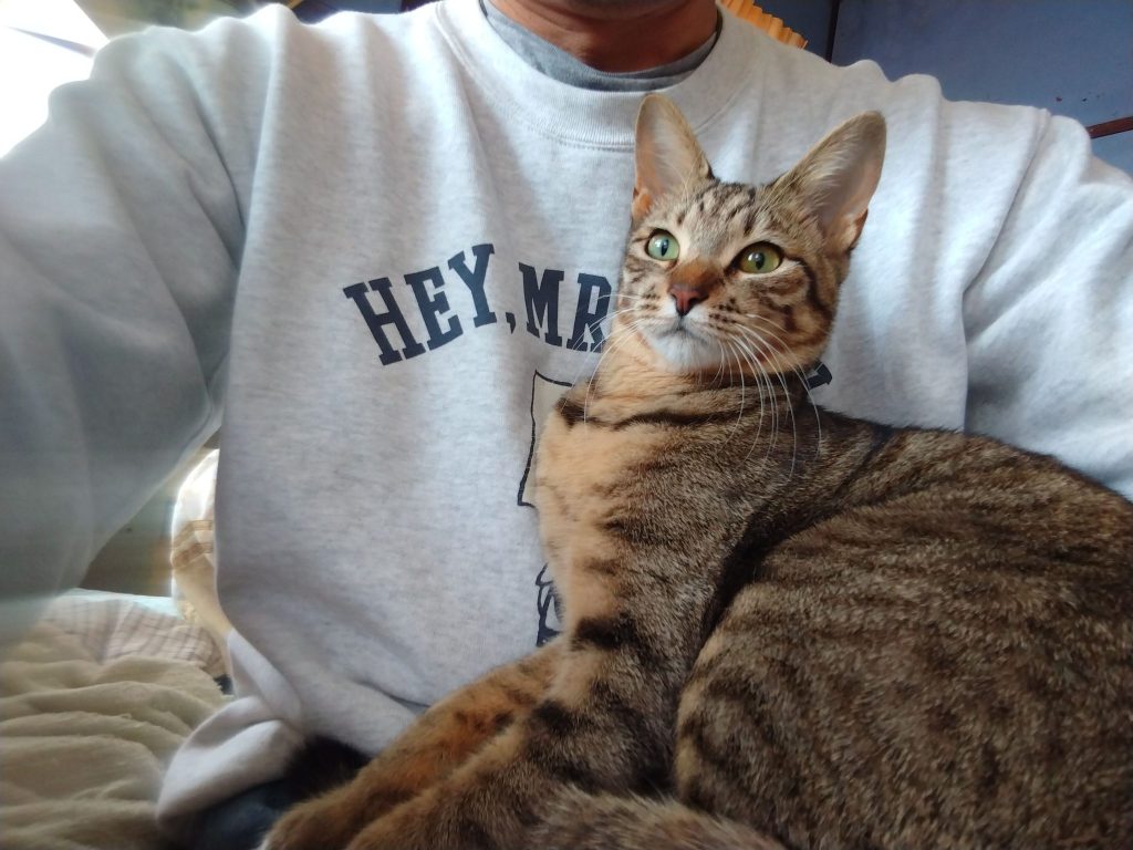 呼んだらほぼ 膝に飛び乗ってくる子です。